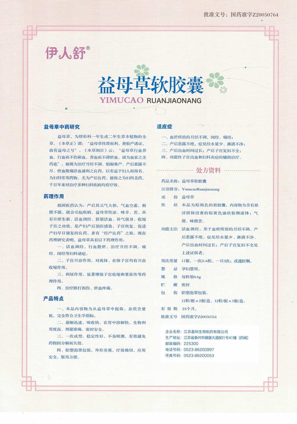 一、本品內(nèi)容物為從益母草中提取,雜質(zhì)含量低,完全符合衛(wèi)生學指標。